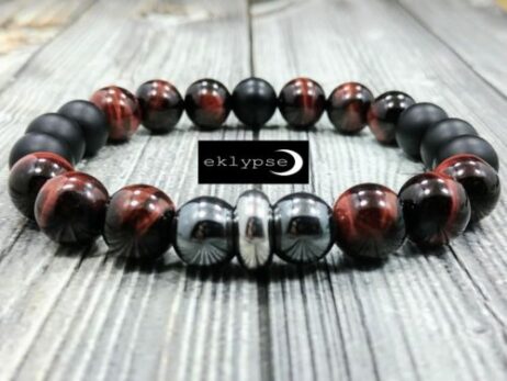 Gemstones: Matte Black Onyx (10mm), Hematite (9mm) and Red Tigers Eye (10mm)