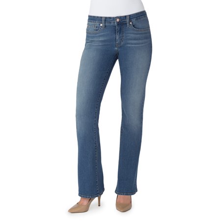 Signature by Levi Strauss & Co. Women’s Totally Shaping Bootcut Jeans:Super stretchy premium denim that keeps its shape all dayHugs your curves for a perfect fitSlightly higher mid riseBuilt in tummy smoothing panel that secretly shapesBoot cut leg opening32″ inseamFabric content varies by color, see product description field for more detailsMachine wash