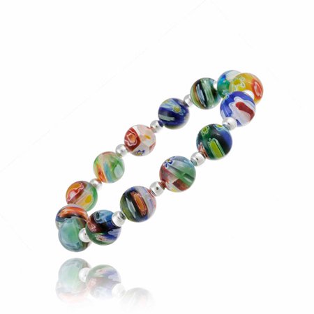 - Venetian Murano Glass Sterling Silver Beaded Millefiori Flower Stretch Bracelet